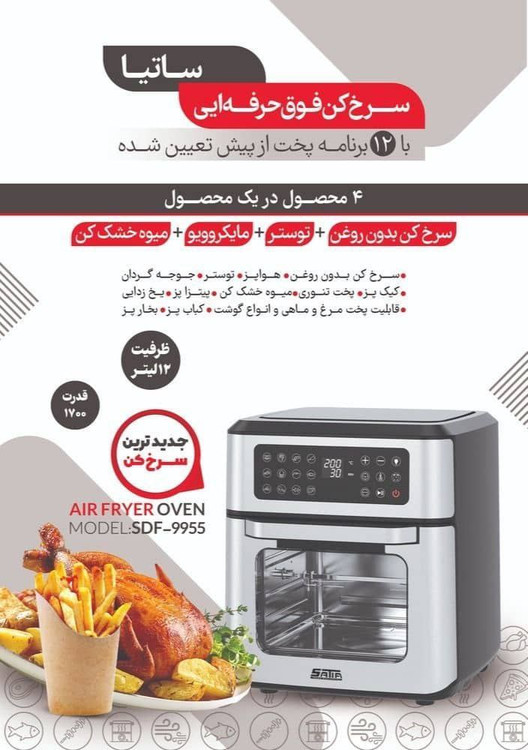 سرخ کن بدون روغن 12 لیتر ساتیا مدل SDF-9955